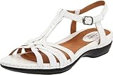 Clarks Women's Sennett Harmony T-Strap Sandal,White Leather,8.5 W US